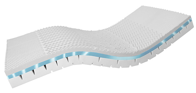 - Partie intermédiaire en mousse HE : 40 kg/m3 apporte un maintien ferme et une bonne durée de vie de la mousse viscoélastique.