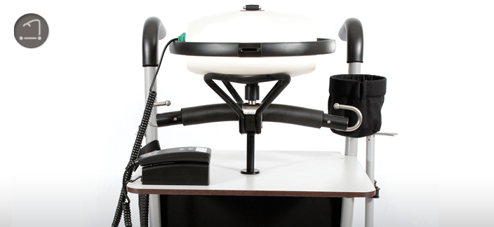 Compact, léger et maniable, le chariot de transport offre des espaces de rangement pour tous les accessoires nécessaires au transfert : chargeur, bras d’extension, cintre, télécommande, harnais…