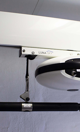 De fleste rum opfylder betingelserne for opsætning af en loftlift, men nogle gange kan en lav loftshøjde blive en udfordring i forhold at skabe tilstrækkelig løftehøjde til forflytningen. For at imødegå denne udfordring og hente mere løftehøjde, har vi designet Luna Sky..