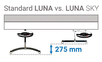 Luna Sky skaber flere muligheder for forflytninger med loftlift; På grund af Luna Skys kompakte design, kan man hente helt op til 275 mm, hvilket åbner for muligheden for at installere loftliften i rum med lavloftshøjde.